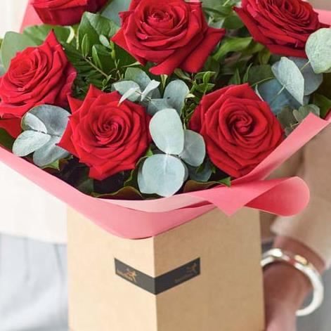 A gorgeous gift box of six luxurious red roses. A classic bloom that's iconic for a reason.