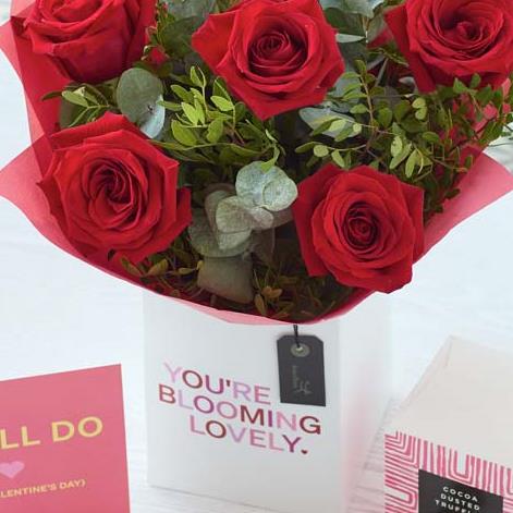 Luxury red roses, scrummy salted caramel flavour cocoa dusted truffles, and a funny card – they'll love this gorgeous gift set (and you!)