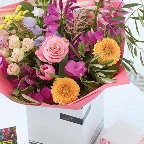 Treat mum to gorgeous blooms plus some lovely extras. She’ll get a gorgeous bouquet handcrafted by a local florist, plus delicious gourmet chocolates and a lovely full-sized card (the florist will pop your message inside). This year our Mother’s Day bouquets are all about gorgeous pastels with pops of colour. Expect to see blooms in shades of baby pink, cream, and lemon with bursts of cerise and tangerine, and highlights of pale blue and lilac.