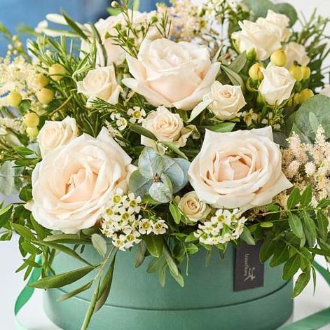 Pull out all the stops with the ultimate hatbox showstopper. No, we're not talking about a big fluffy hat, we're talking about gorgeous fresh flowers arranged just so in a stylish box.