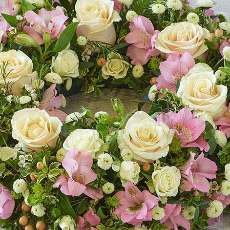 A beautiful pastel mix of soft pink, peach and cream. Featuring roses, chrysanthemums and delicate foliages.